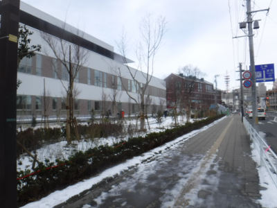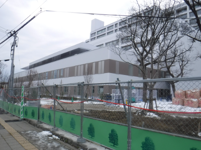 仙台医療センターの新築工事現場脇の旧ベンチの周り