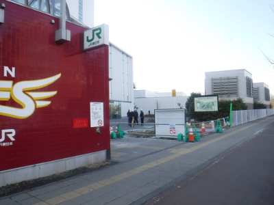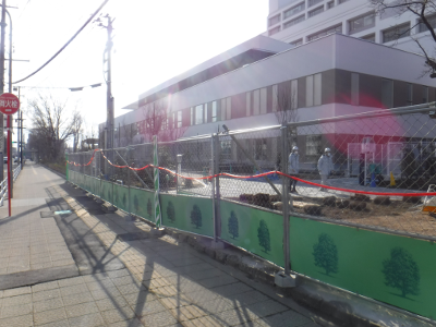 仙台医療センターの新築工事現場脇の旧ベンチの周り