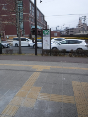 この日も,宮城野原駅前に違法駐輪された自転車はなかった。また,点字ブロックの利用に支障をきたすような妨害物もなかった。
