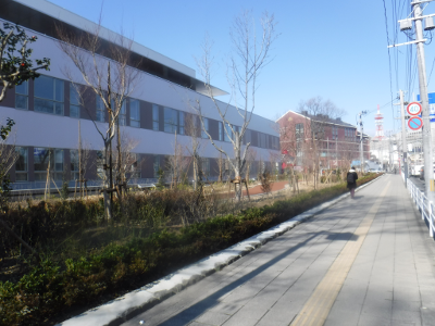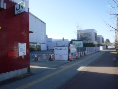 仙台医療センターの新築工事現場脇の旧ベンチの周り