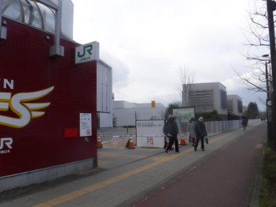 仙台医療センターの新築工事現場脇の旧ベンチの周り