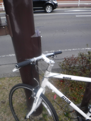 が貼られていた。この位置への自転車の違法駐輪は,1台だけであれば,視覚障害者の歩行にも,他の交通の歩行にも大きな影響はないが,真似をする自転車が増えると,問題となってくる。管理者には,真似する自転車が出現する前に,迅速な対応をしていただきたい。