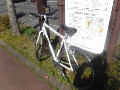 以降,この場所に放置されたままである可能性が高い。この位置への自転車の違法駐輪は,1台だけであれば,視覚障害者の歩行にも,他の交通の歩行にも大きな影響はないが,真似をする自転車が増えると,問題となってくる。管理者には,真似する自転車が出現する前に,迅速な対応をしていただきたい。