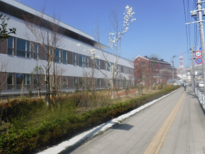 仙台医療センターの新築工事現場脇の旧ベンチの周り