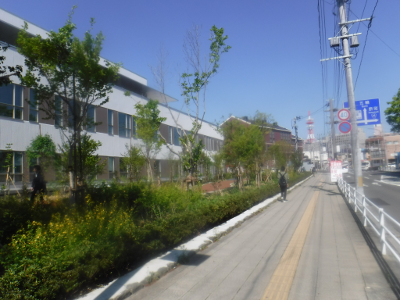 仙台医療センターの新築工事現場脇の旧ベンチの周り
