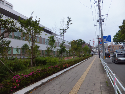 仙台医療センターの新築工事現場脇の旧ベンチの周り