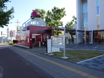 旧医療センター側の駅舎前には,1台の自転車が違法駐輪されていた