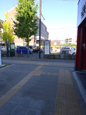 。この位置への違法駐輪は,1台程度であれば,視覚障害者の点字ブロック利用には,直接的影響は及ぼさないと思われる。しかし,朝の通勤・通学時間帯に,電車が到着した直後と思われるタイミングには,駅から出てきた人々と,駅に向かう人の両者で道が混み合うため,この自転車が歩行者の妨害となっていた。管理者には,早急な対応を求めたい。
