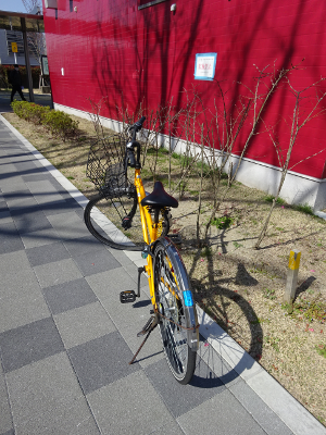 宮城野原駅の現福島医療センター側の駅舎周辺の公道側には,違法駐輪された自転車はなかった。しかし,医療センターの敷地内の遊歩道に,1台の自転車が違法駐輪されていた。しかも,よりにもよって,「駐輪禁止」と書いた貼り紙の前に駐輪している。この位置への違法駐輪は,視覚障害者の点字ブロック利用には影響は及ぼさない。しかし,朝夕の通勤・通学時間帯に,電車が到着した直後と思われるタイミングには,駅から出てきた人々と,駅に向かう人の両者で道が混み合うため,この自転車が歩行者の妨害となる場所である。管理者には,早急な対応を求めたい。