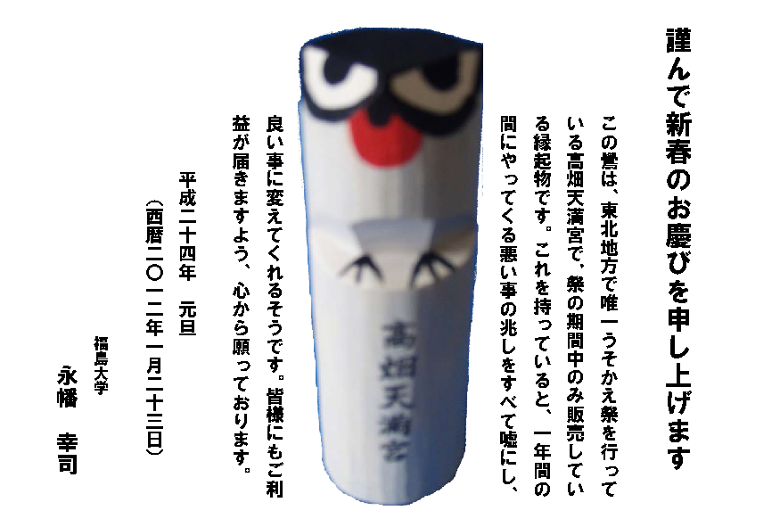 3月の水曜日の朝,ラジオ福島の「朝から全開!」という番組内の「全開朝ゼミ」というコーナー(8:20〜)に永幡が出演します。うち1回は,永幡担当が担当する大学院の演習の受講者が,演習の一環で行った調査の結果を紹介します。 (2010/02/26)