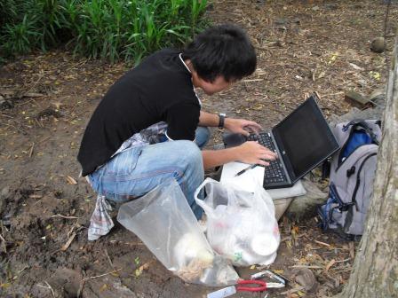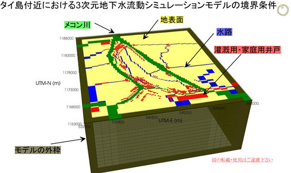 タイ島の地下水は,メコン川と一部つながっていると考えられることから,河川水位の変動と地下水位の変動の相関性を検討しています.そのために2009年1月から河川水位の連続観測を行っています.また,雨量についても2009年5月から10分ごとの雨量を観測しています.
