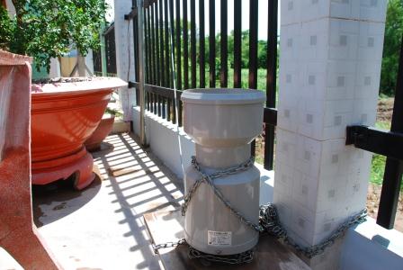 ベトナム・ドンタップ省タイ島の民家に設置した自記雨量計