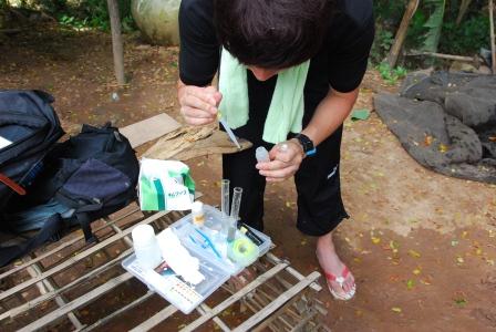 アジア砒素ネットワークの廣中博見氏が開発したヒ素フィールドキットを使用し,ヒ素濃度を測定しています.