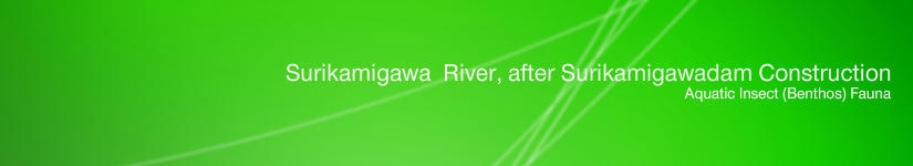 摺上川ダム試験湛水開始後の2005年5月から試験湛水が終了し,ダムも完成した後の2006年12月までの摺上川の水生昆虫に関する調査結果を公表しました。10目73科152属223種(共生のシステム, 5: 55-70)。