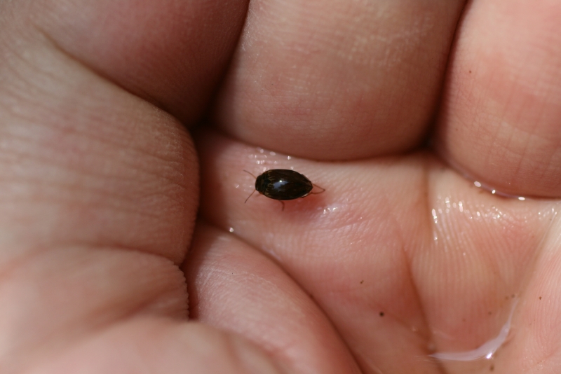 ゲンゴロウ類は主にため池や水田など止水域に生息していますが,中には流水域を主たる生活場所にしている種類もいます。環境省や福島県のレッドデータブック掲載種であるゲンゴロウ(タダゲンとかナミゲンと呼ばれる体長40mmになる種類)のような大型種からチビゲンゴロウのような体長1mmちょっとの微小種まで,ゲンゴロウ類の姿形は変化に富みます。 そんなゲンゴロウ類は生息空間としての水域,産卵基質としての水草,幼虫と成虫にとっての餌資源,蛹化するための土など,様々な環境がそろっていないと世代を繋ぐことができません。ゲンゴロウ類が生息する環境は多くの生き物にとっての良好な環境と言えるでしょう。