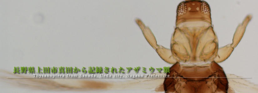 - Thrips coloratus Schmutz ビワハナアザミウマ入軽井沢(枯葉),信綱寺(ヤマハギ),真田本城跡(イネ科草本類,ササ類)