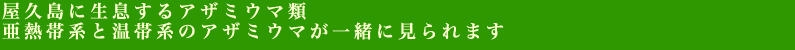 - Thrips hawaiienesis(Morgan) ハナアザミウマ麦生,尾之間;タブ,尾之間,猿川;ススキ,原,千尋滝付近,尾之間;ササ類,大川;モクタチバナ,春牧;ヨモギ類,尾之間;アオモジ