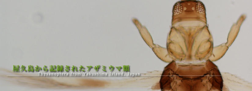 - Nesothrips brevicollis(Bagnall)安房,永田,千尋滝付近,尾之間,猿川;ススキ,尾之間,高平;枯木,千尋滝付近,大川;ササ類,永田;イネ科草本類
